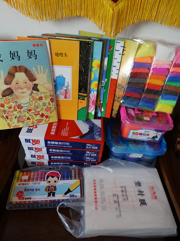 本次志愿服务,是带着赢博线上平台公司领导的关怀,响应唐齿第一届“书香伴我行”精神文明活动的号召进行的。志愿者们代表集团公司本部工会给世纪星的孩子们带来了五颜六色的绘本、彩笔、橡皮泥,包括老师教学需要的打印纸、塑封膜等爱心物资。