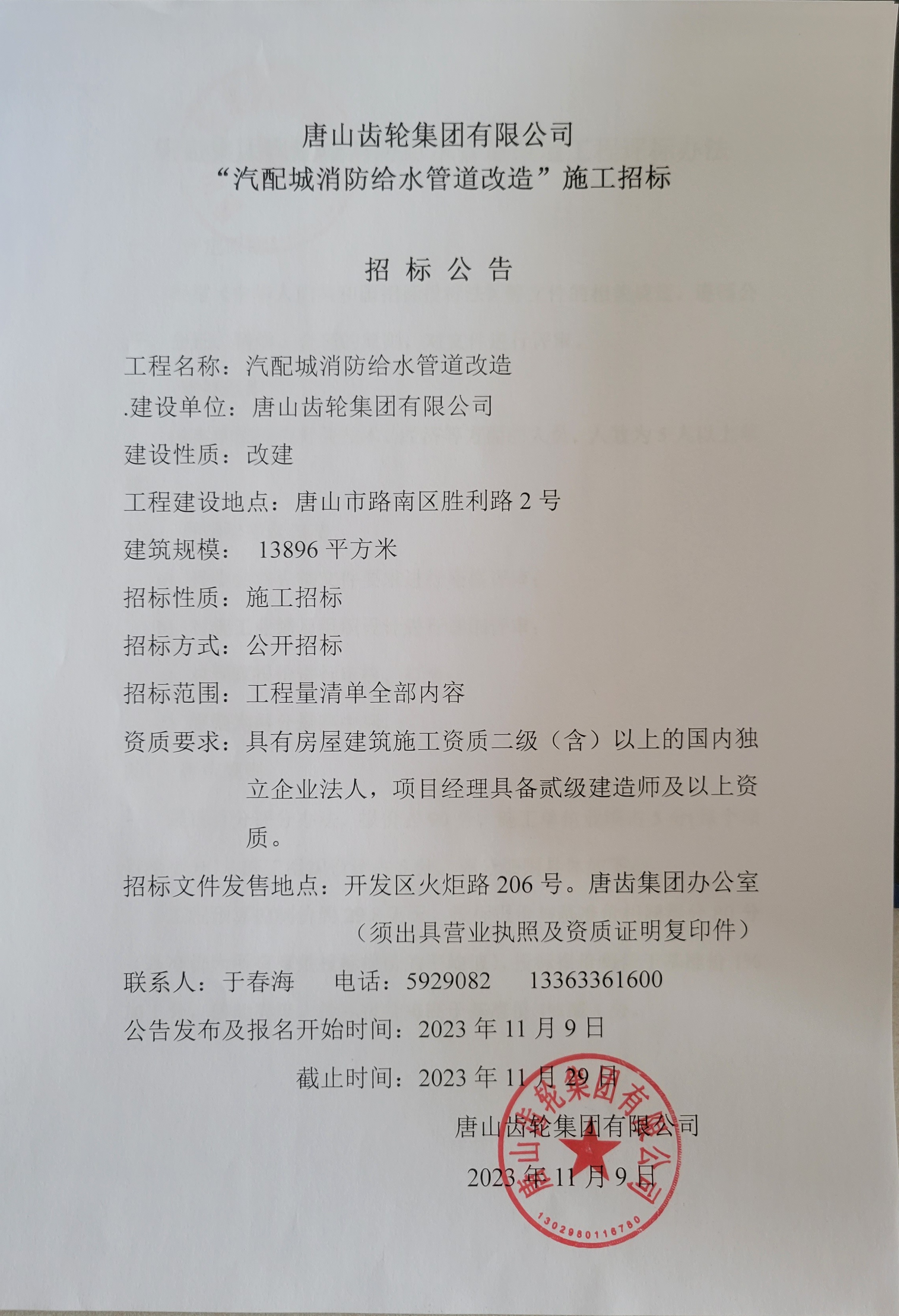 赢博线上平台“汽配城消防给水管道改造”施工招标