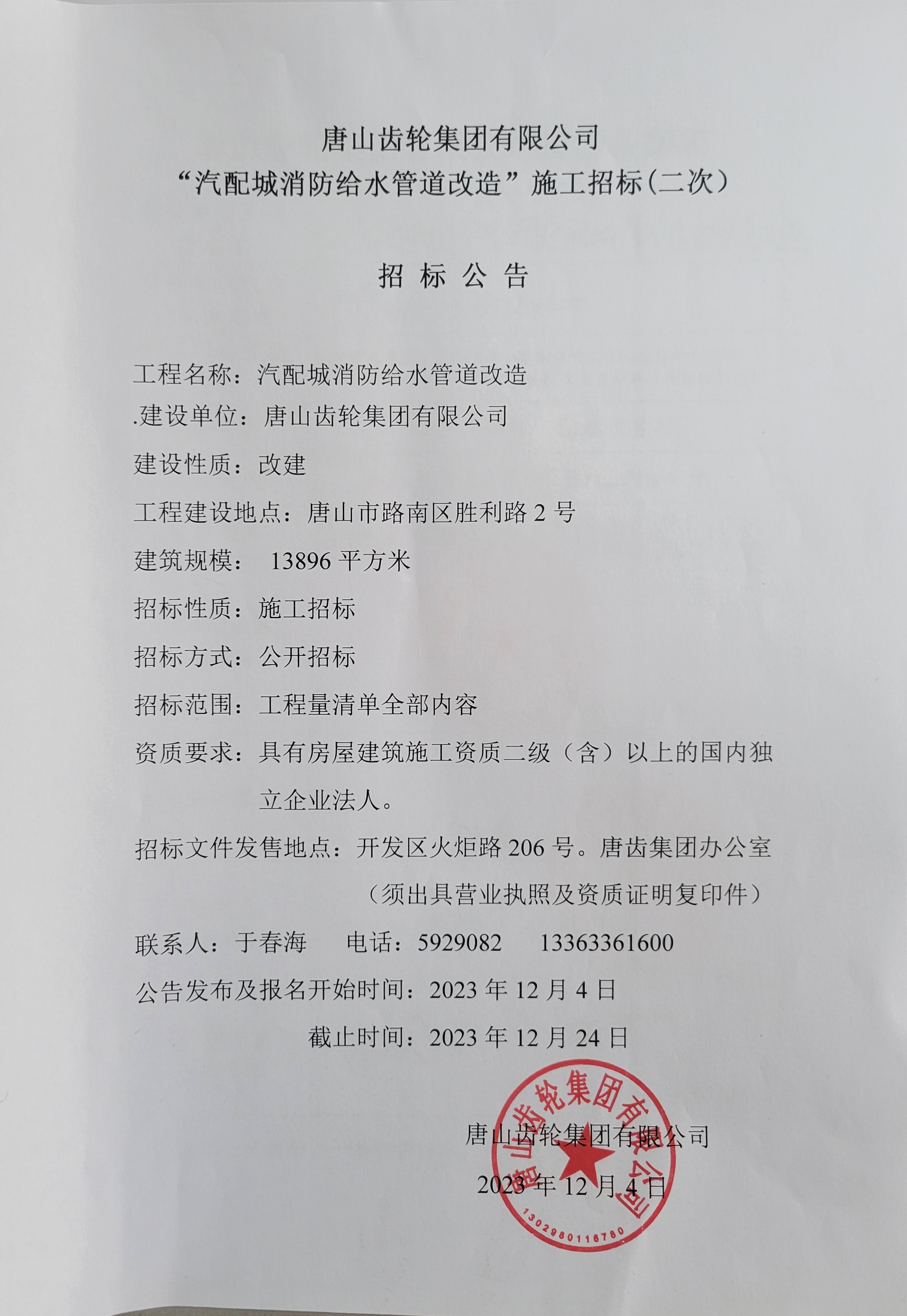 赢博线上平台“汽配城消防给水管道改造”施工招标(二次)