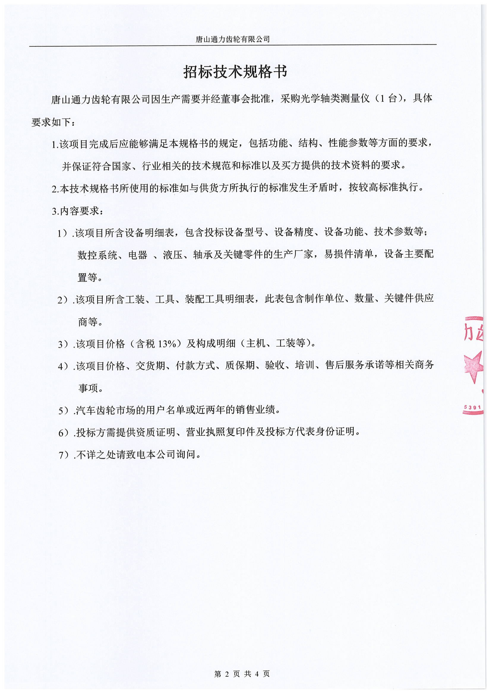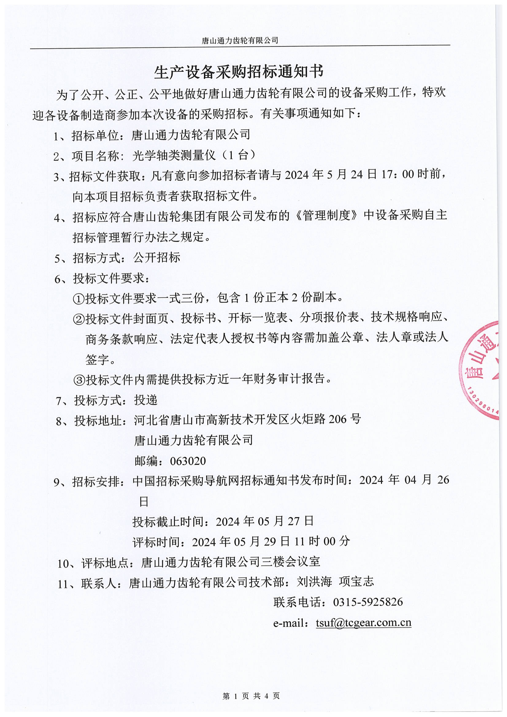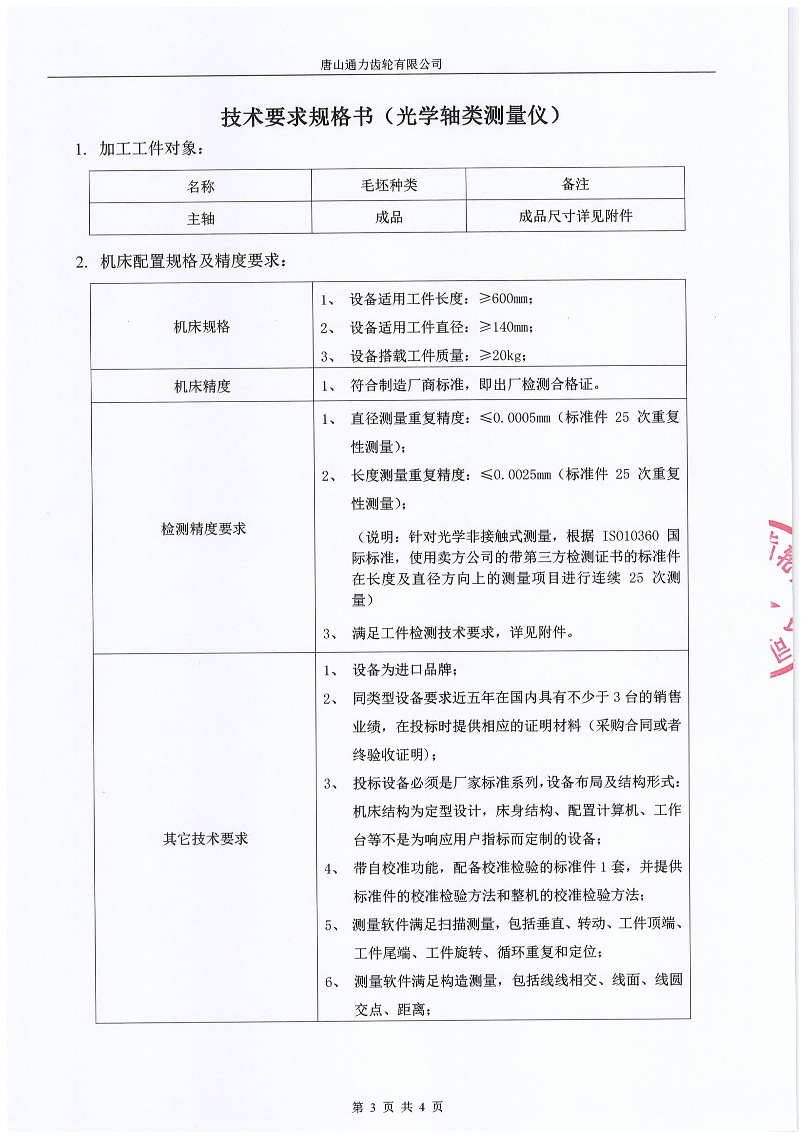唐山通力齿轮公司光学轴类测量仪1台采购招标通知