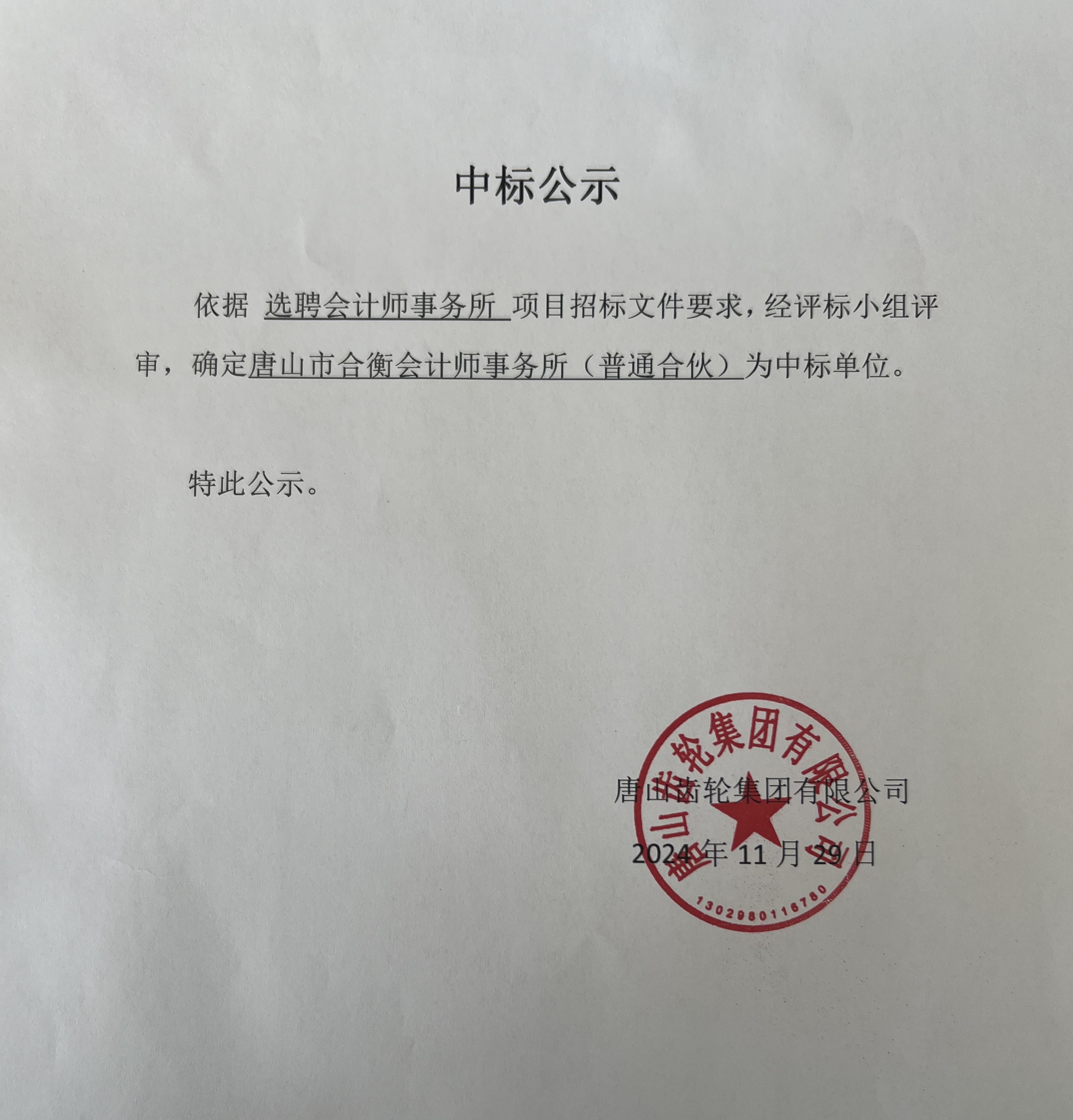 赢博线上平台2024-2026年审计机构选聘项目中标公示