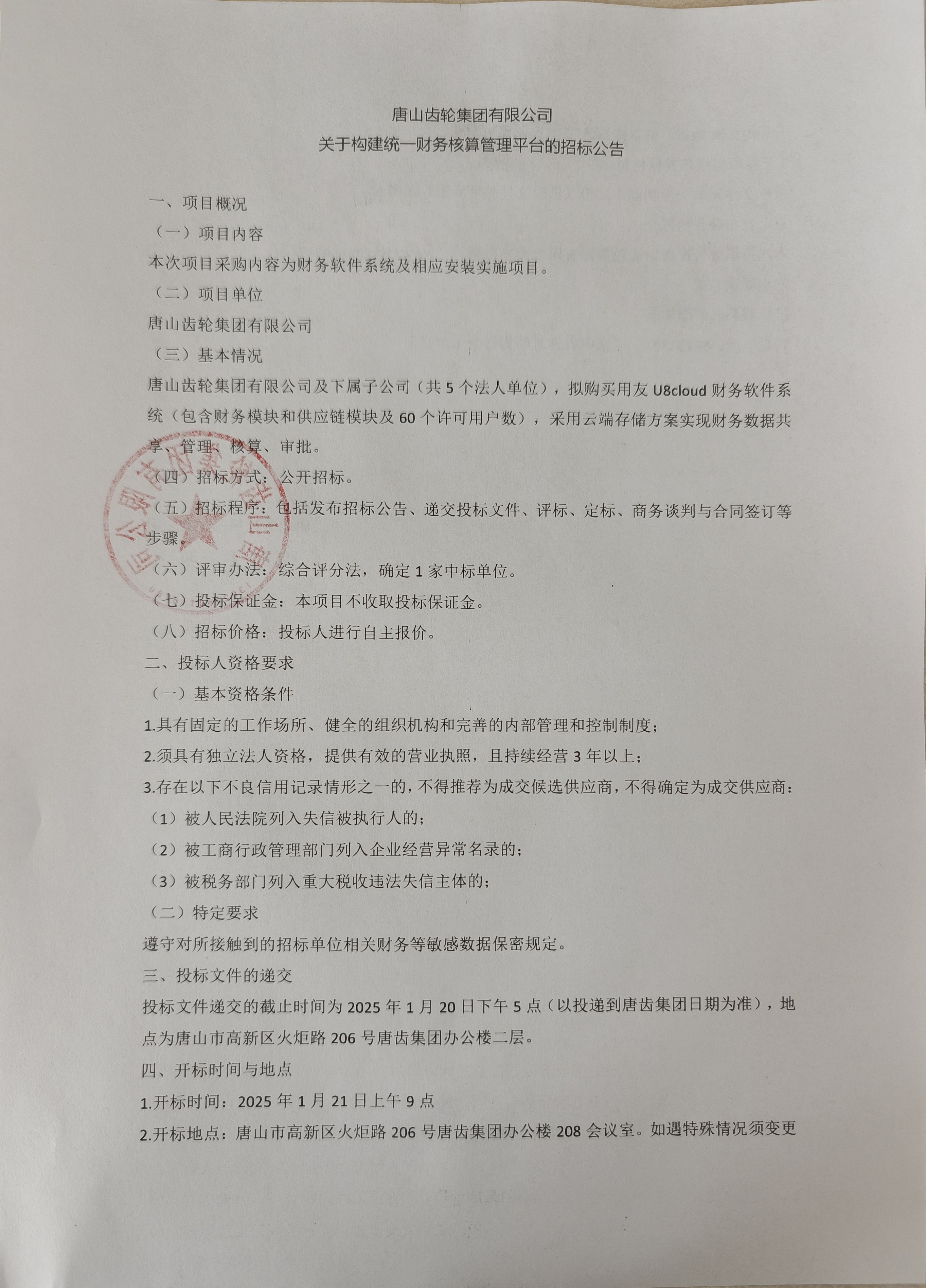 赢博线上平台关于构建统一财务核算管理平台的招标公告
