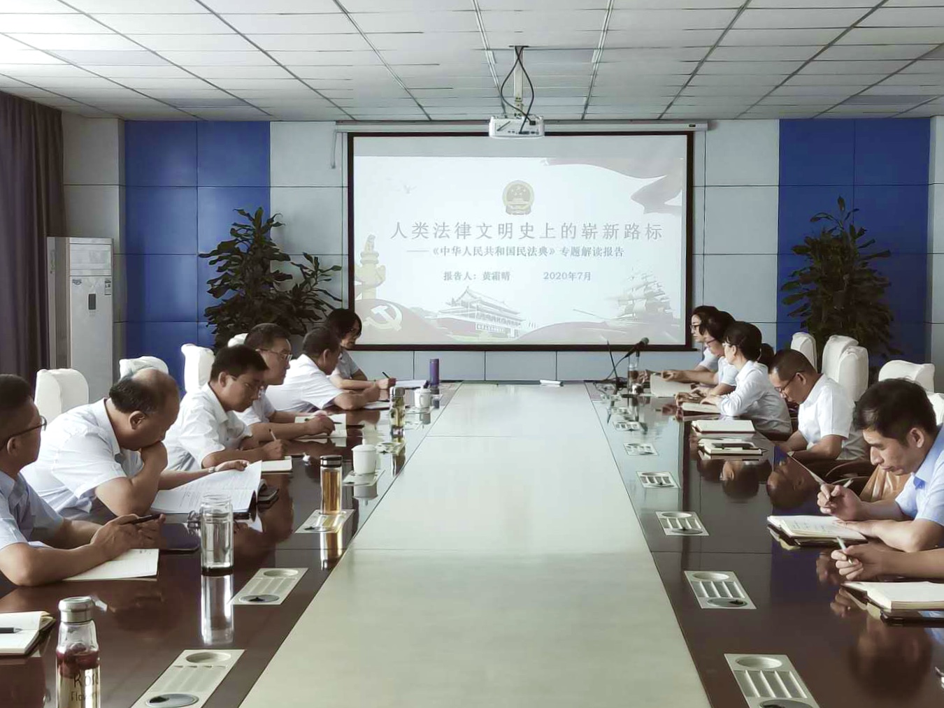 7月14日下午,赢博线上平台组织开展《中华人民共和国民法典》专题学习培训会。集团班子成员、本部全体人员参加培训学习。